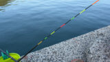 たまに長い棒ウキがスポーンと綺麗に入ることがありますが、このアタリは大抵フグ。エサを飲み込んでしまった場合です。ここでアワセると、大抵ハリスが切れます。