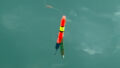 そして仕掛けが完全に馴染むと、黄色が沈み、海面に赤のラインが見えるようになります。