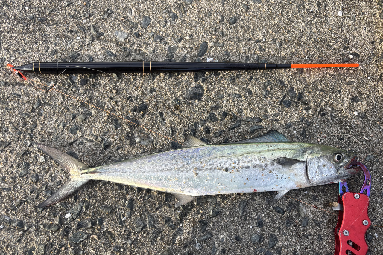湾内にたくさん入り込んできた時は、オキアミを餌にした普通のフカセにもヒットしてきます。